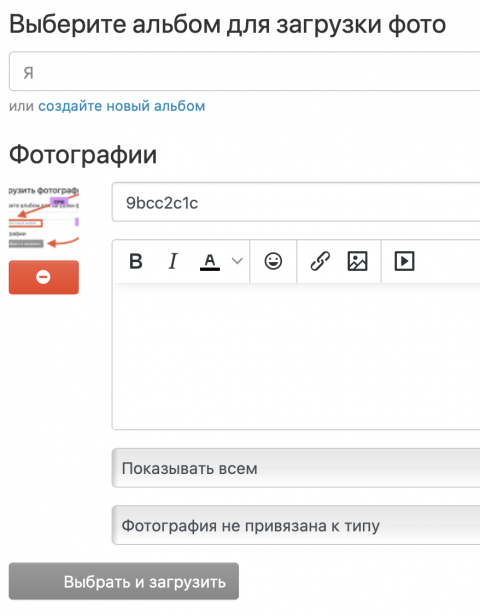 Куда нужно нажать, чтобы добавить фотографию в альбом? 👍0👎0❤️0😂0🤬0💩0🤡0 9 комментариев 0 Евгений (Админ)! 1 час назад # Или 0 Eliza 1 час назад # А после второго шага ничего не получается. Нажимаю добавить фото и снова появляется добавить альбом. 0 Евгений (Админ)! 1 час назад # и вот оно загруженное фото 0 Eliza 1 час назад # У меня нет таких окошек 0 Eliza 59 минут назад # 0 Eliza 58 минут назад # Здесь если я нажимаю добавить фотографии то у меня появляется добавить альбом 0 Евгений (Админ)! 37 минут назад # Так вот же у вас на фото уже есть созданный альбом. Зайдите в него и нажмите загрузить фотографии 0 Eliza 30 минут назад # Нажимаю и снова появляется добавить альбом 0 Евгений (Админ)! 16 минут назад # Вам не надо создавать альбом. Не смотрите на этот пункт. Жмите сюда Недавно заходили Маруся 45 лет, Москва Елена 36 лет, Москва Екатерина 41 год, Москва Евгений (Админ)! 41 год, Москва Андрей 55 лет, Екатеринбург Максим 38 лет, Туапсе Доменик 37 лет, Москва Андрей 46 лет, Москва Юли 40 лет, Химки Дима 43 года, Москва Посмотреть все анкеты